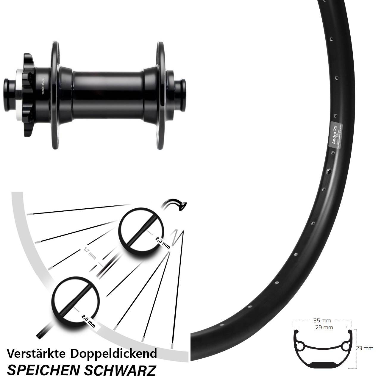 - Speichenstärke: 2,3-1,7-2,0 mm Edelstahl