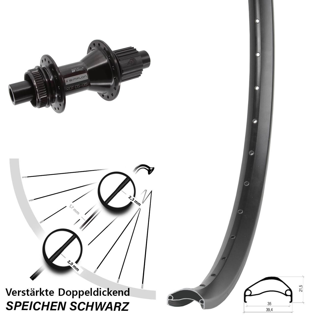 27,5 Zoll Ambrosio E35 DT Swiss 370 Hybrid Hinterrad Disc 12x142 Shimano Micro Spline mit verstärkten Doppeldickendspeichen