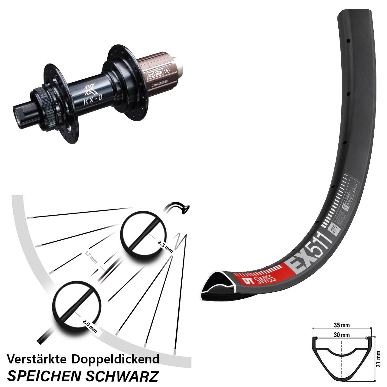 Technische Daten Hinterrad DT Swiss EX 511 Disc schwarz mit Nabe KX-B schwarz