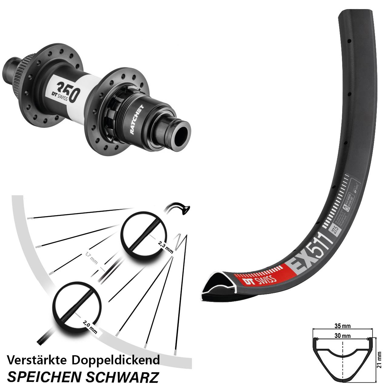 Technische Daten Hinterrad DT Swiss EX 511 Disc schwarz mit Nabe DT Swiss 350 Ratchet 36 schwarz
