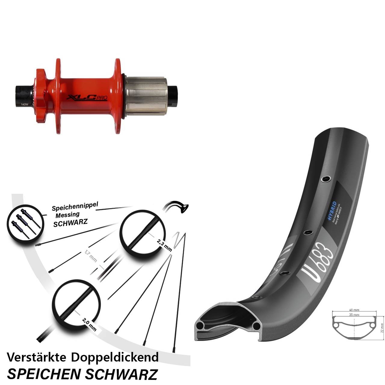 27,5 Zoll DT Swiss U 683 XLC rot Disc Laufrad 12x142 8-11 fach HG mit verstärkten Doppeldickendspeichen