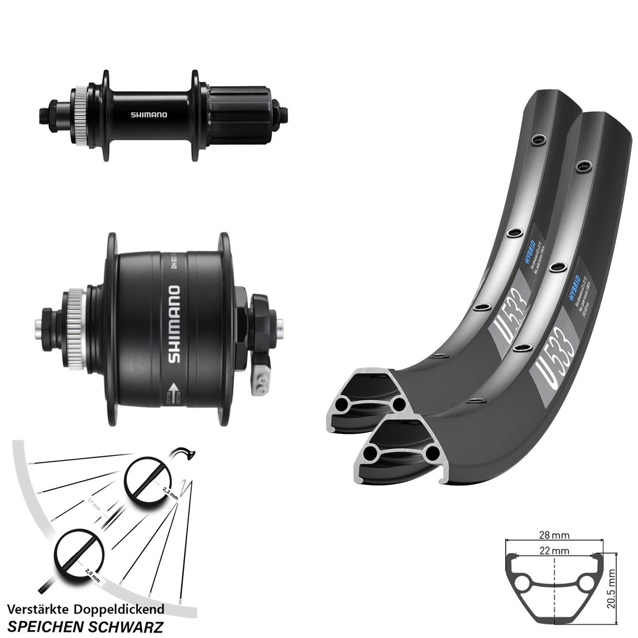 - 1 DT Swiss U 533 Shimano DH-3D37 650B Disc Laufrad mit Nabendynamo QR (Auswahl zwischen Messingnippel schwarz, Messingnippel silbern)