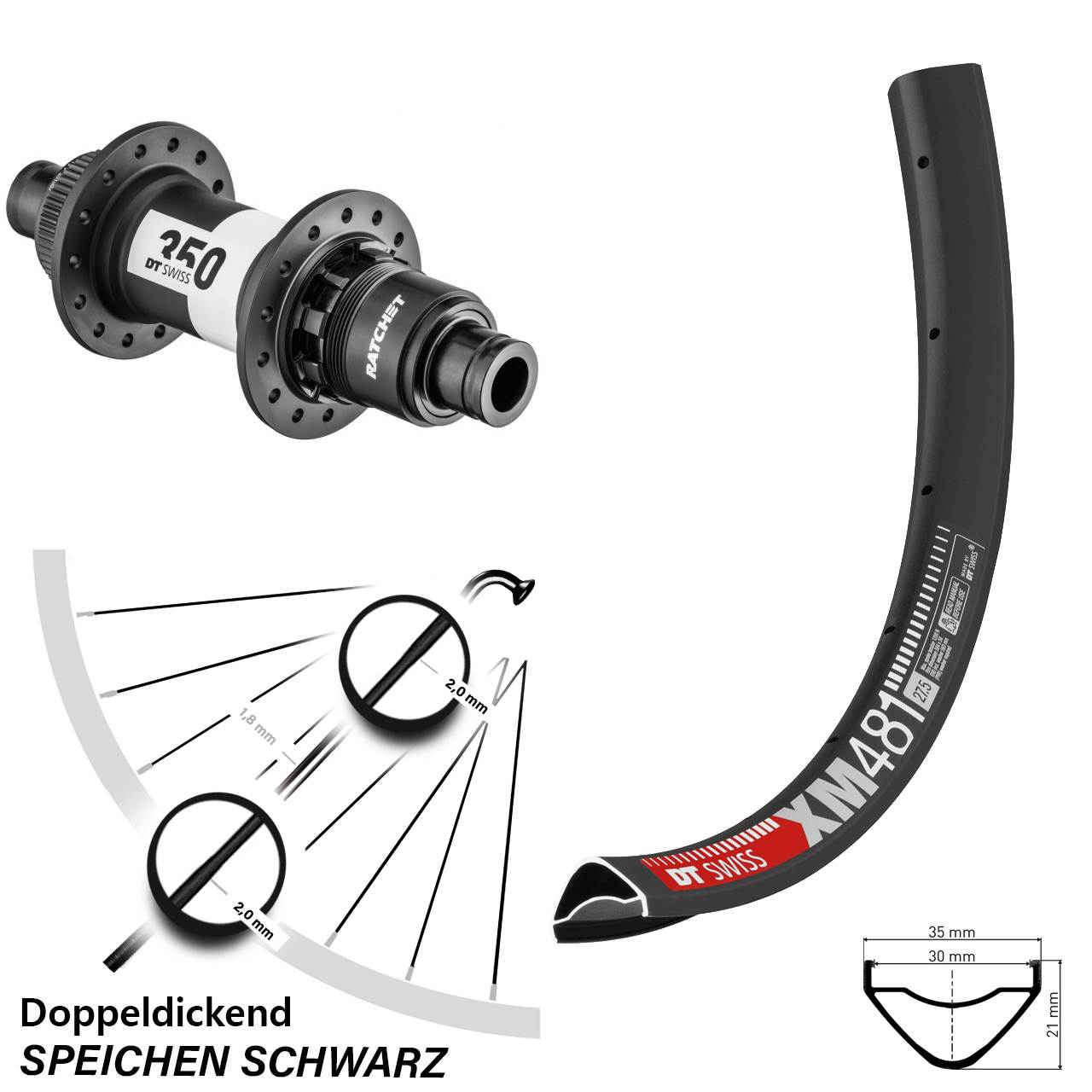 27,5 Zoll DT Swiss XM 481 Hinterrad 350 Centerlock XD 12x148 mit Doppeldickendspeichen