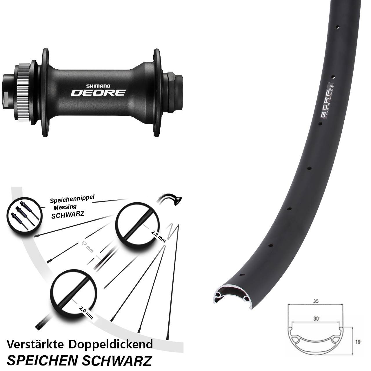 27,5 Zoll Gora 30 Shimano Deore Vorderrad Centerlock 15x110 Boost mit verstärkten Doppeldickendspeichen