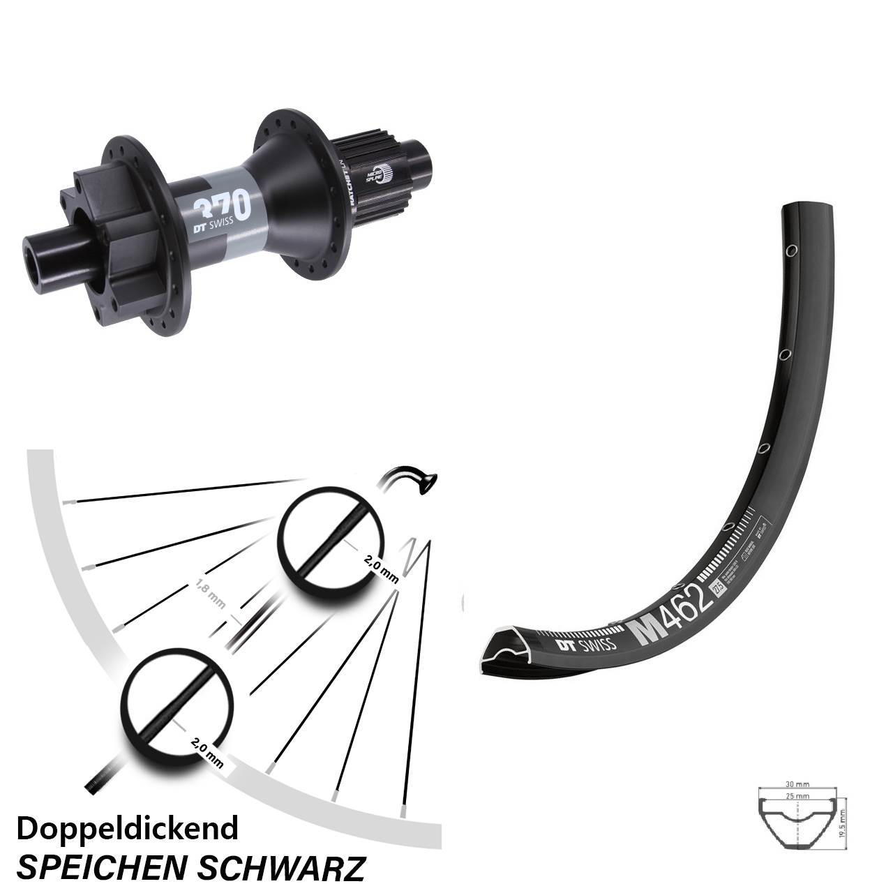 Technische Daten Hinterrad DT Swiss M 462 Disc schwarz mit Nabe DT Swiss 370 Ratchet LN schwarz