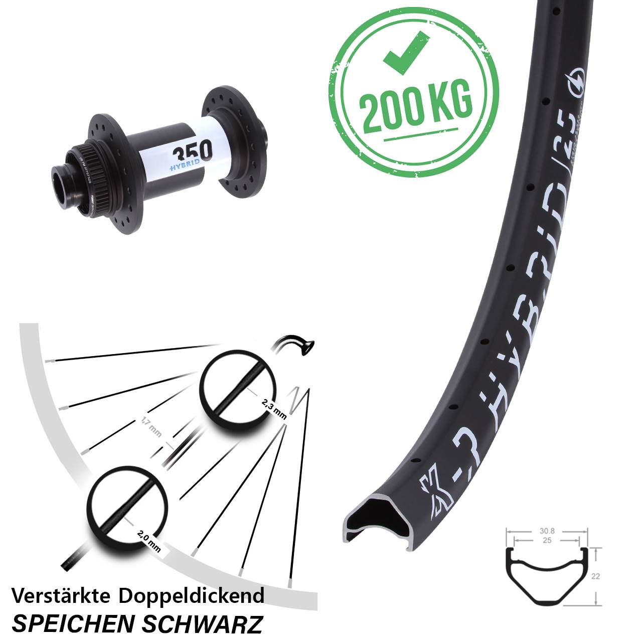 Technische Daten Vorderrad KX-R Hybrid 25 schwarz mit Nabe DT Swiss 350 Hybrid schwarz