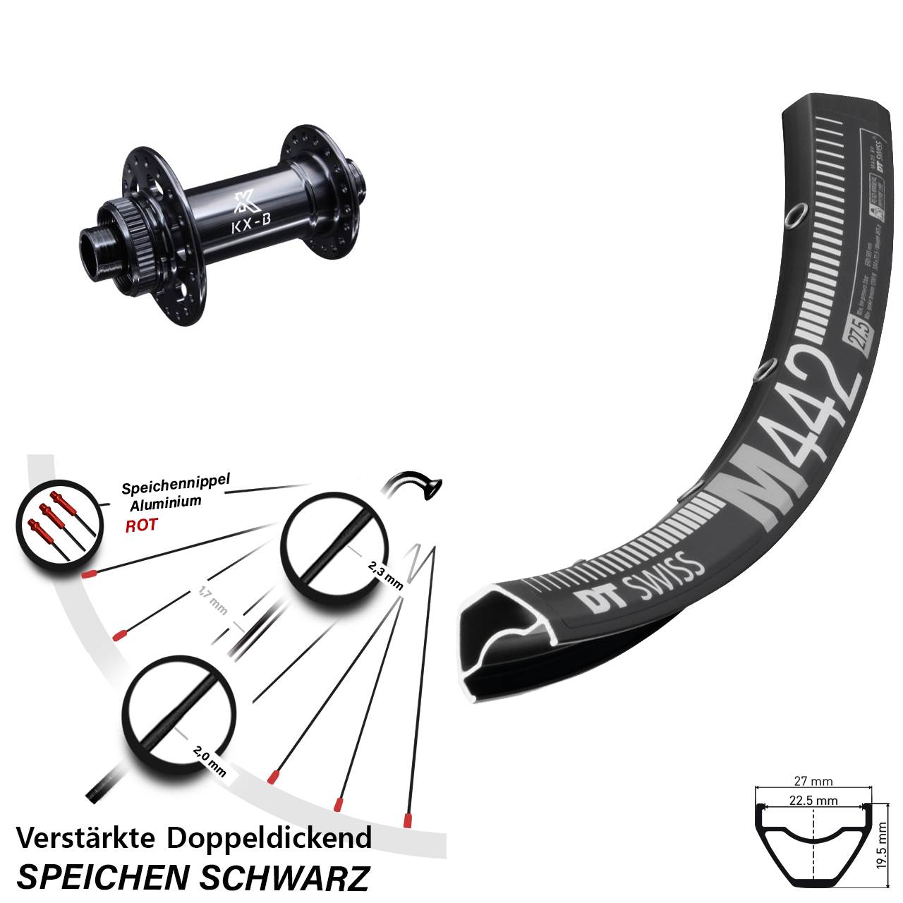 28 Zoll DT Swiss M442 KX-B Vorderrad Centerlock 12x110 Boost mit verstärkten Doppeldickendspeichen