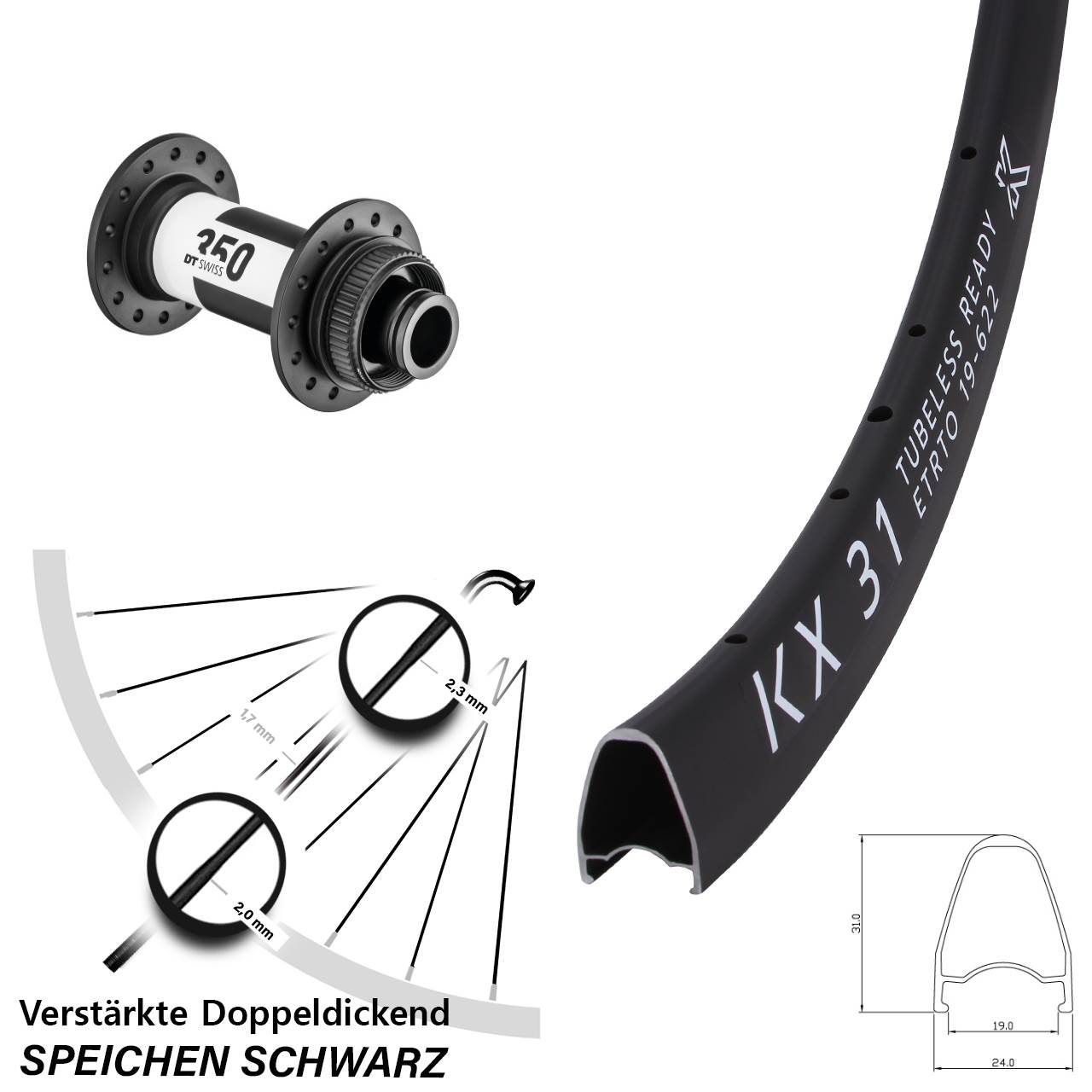 Technische Daten Vorderrad KX 31 schwarz mit Nabe DT Swiss 350 schwarz