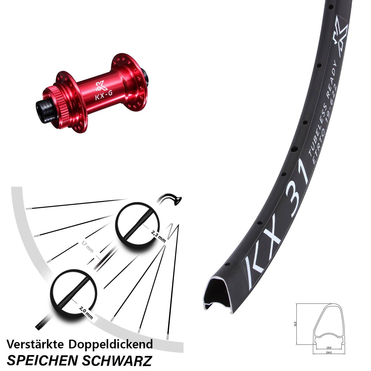 Technische Daten Vorderrad KX 31 Offset schwarz mit Nabe KX-G rot