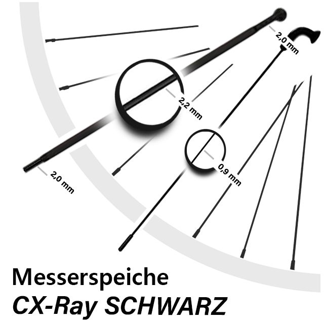- Typ: sehr leichte aerodynamische Messerspeiche mit hoher Festigkeit und Flexibilität