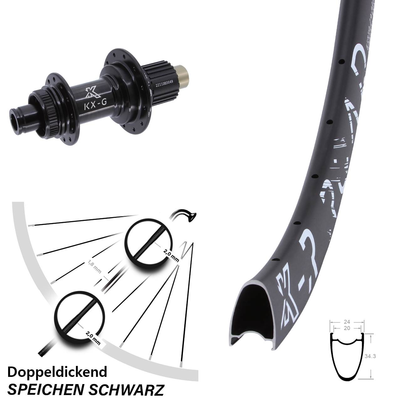 Technische Daten Hinterrad KX-R Road schwarz mit Nabe KX-G Steckachse schwarz