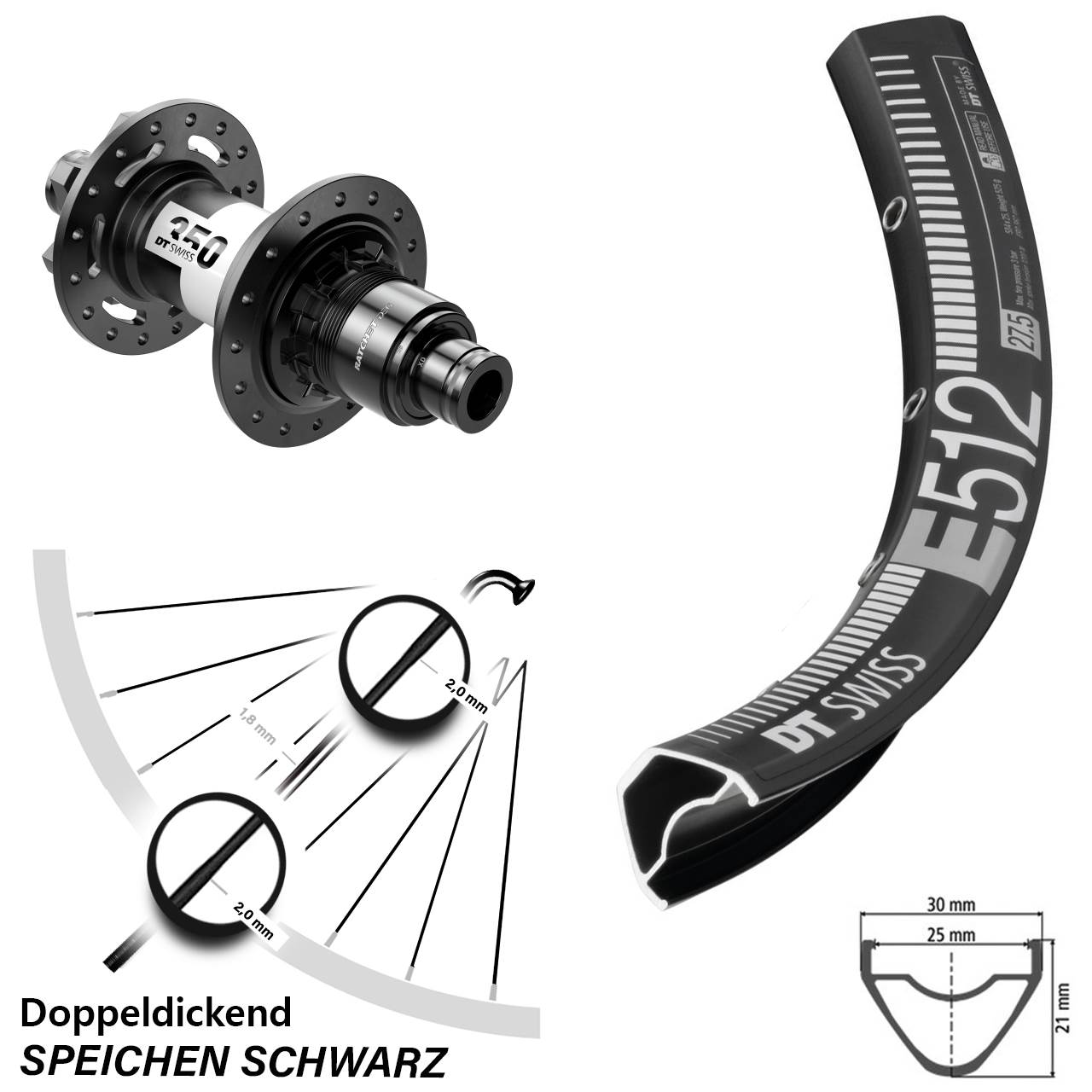 - Speichenstärke: 2,0-1,8-2,0 mm Edelstahl
