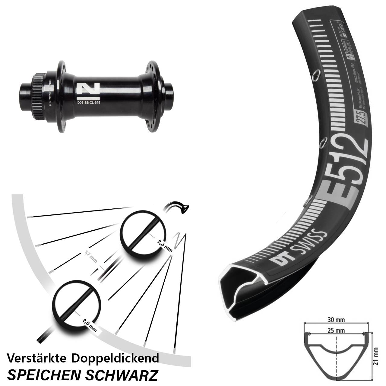 Technische Daten Vorderrad DT Swiss E 512 Disc schwarz mit Nabe Novatec D041 schwarz