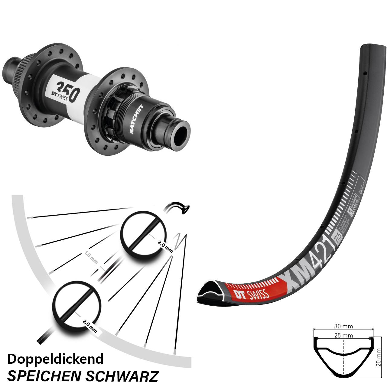Technische Daten Hinterrad DT Swiss XM 421 Disc schwarz mit Nabe DT Swiss 350 Ratchet 36 schwarz