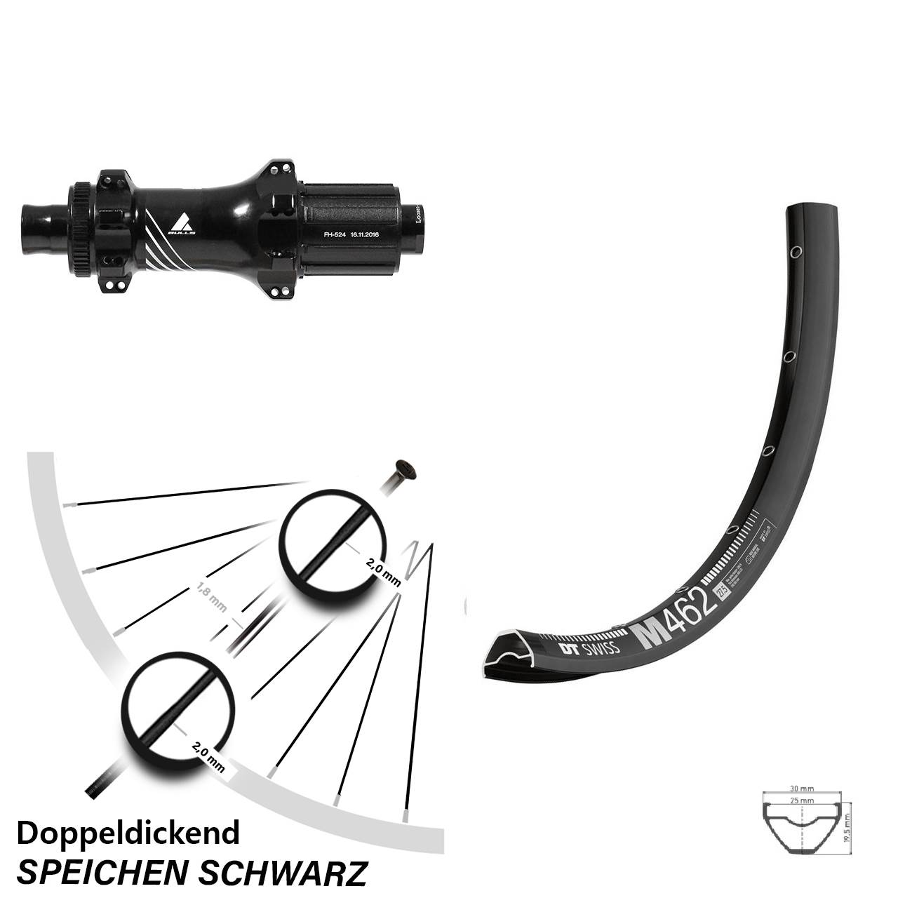 Technische Daten Hinterrad DT Swiss M 462 Disc schwarz mit Nabe Formula TC-148A Boost Straightpull schwarz