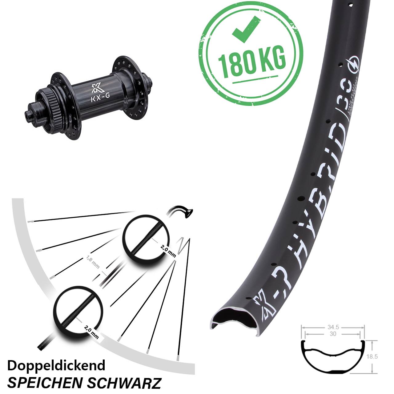 Technische Daten Vorderrad KX-R Hybrid 30 schwarz mit Nabe KX-G schwarz