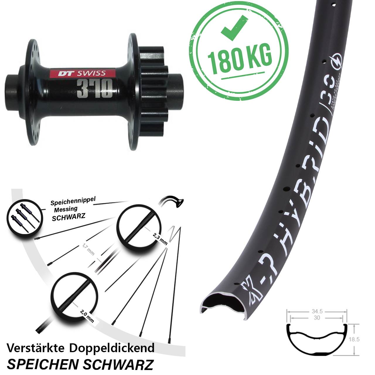Technische Daten Vorderrad KX-R Hybrid 30 schwarz mit Nabe DT Swiss 370 schwarz