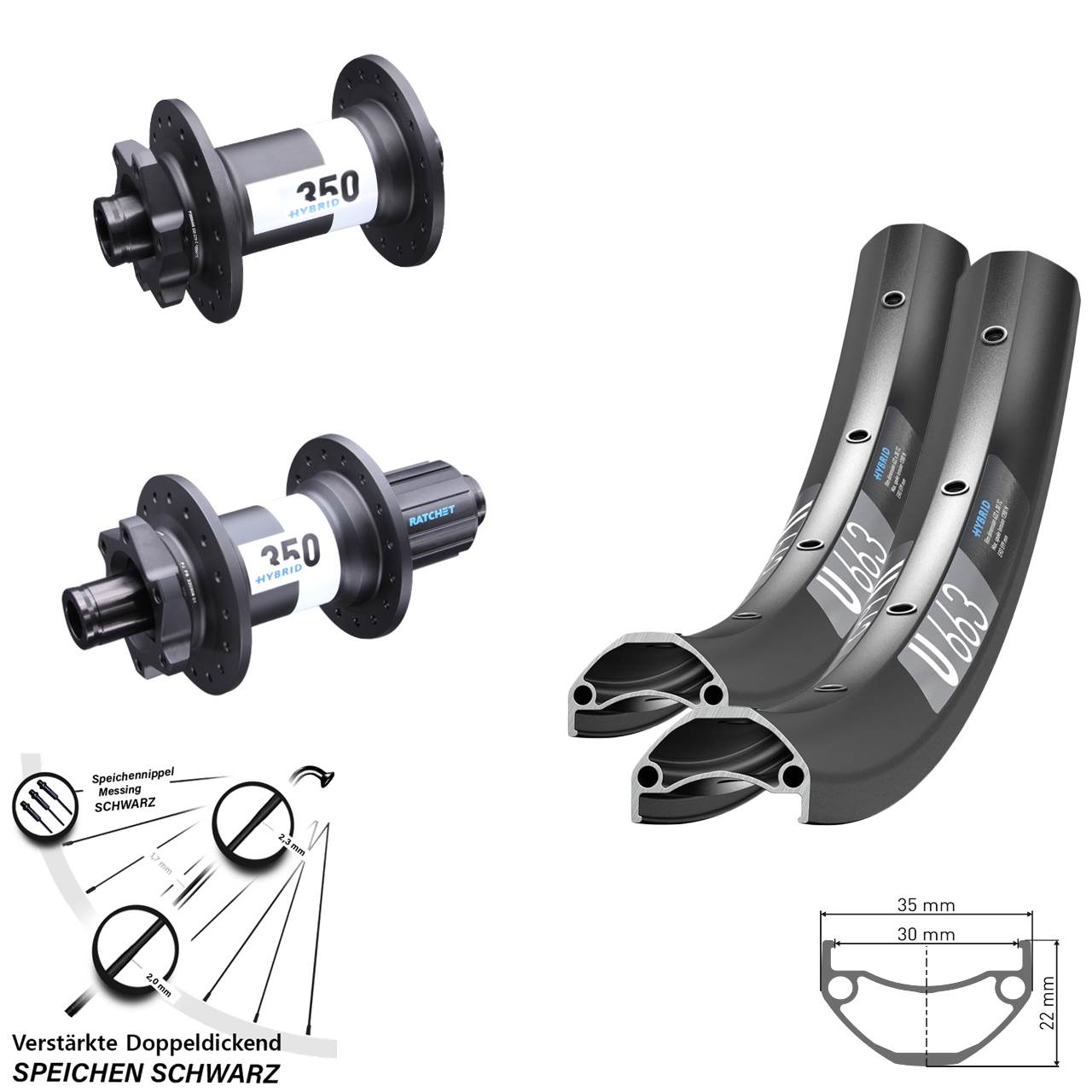 - Modell Vorderradnabe / Hinterradnabe: DT Swiss 350 Hybrid DT Swiss 350 Hybrid Ratchet 24 schwarz