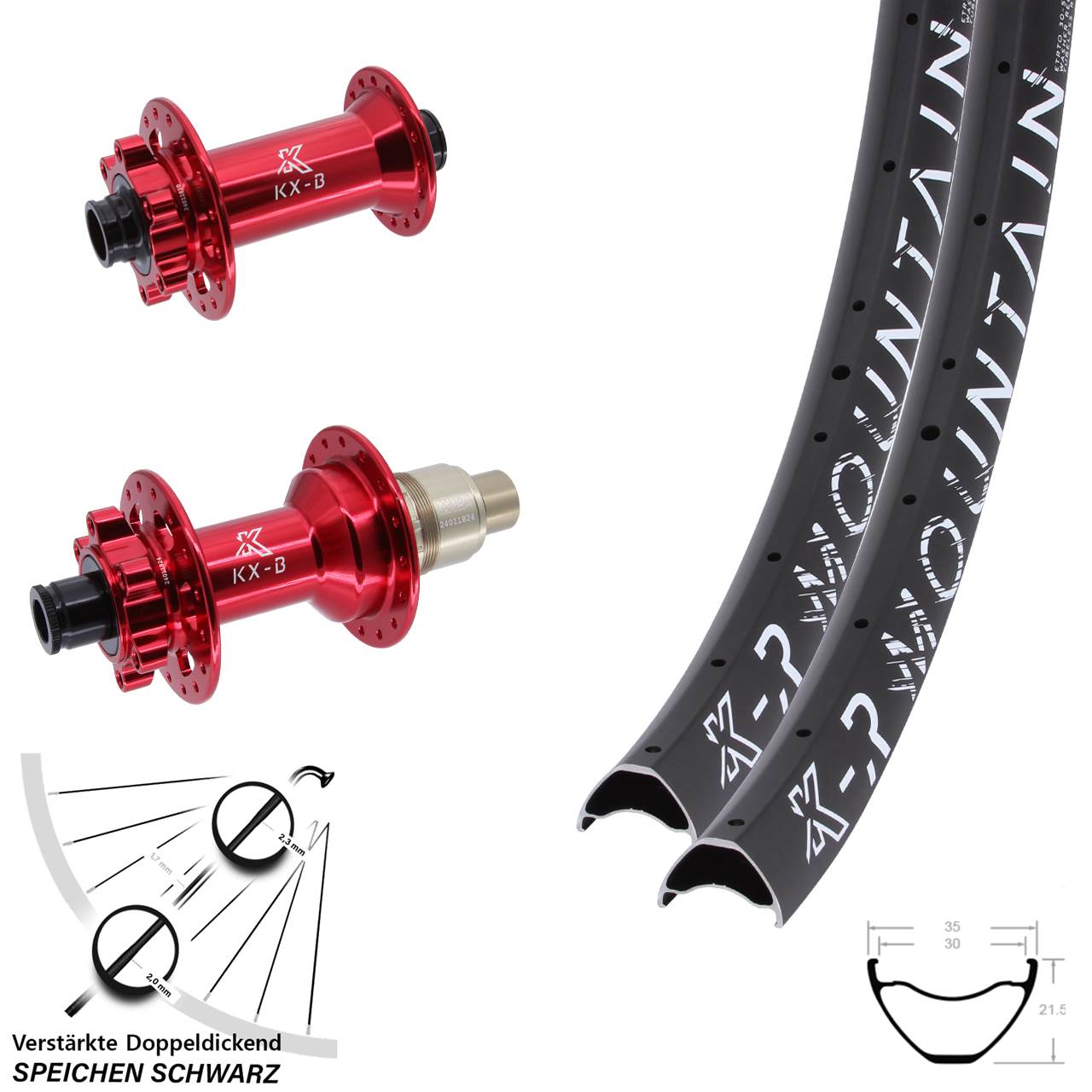 6-Loch Laufradsatz 15x110 12x148 27,5 Zoll KX-BR Mountain rot SRAM XD mit verstärkten Doppeldickendspeichen