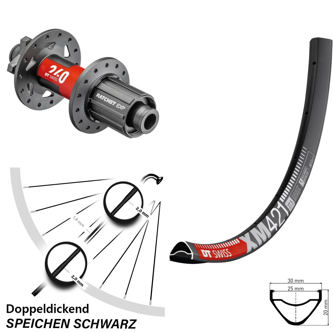 Technische Daten Hinterrad DT Swiss XM 421 Disc schwarz mit Nabe DT Swiss 240 Ratchet EXP schwarz