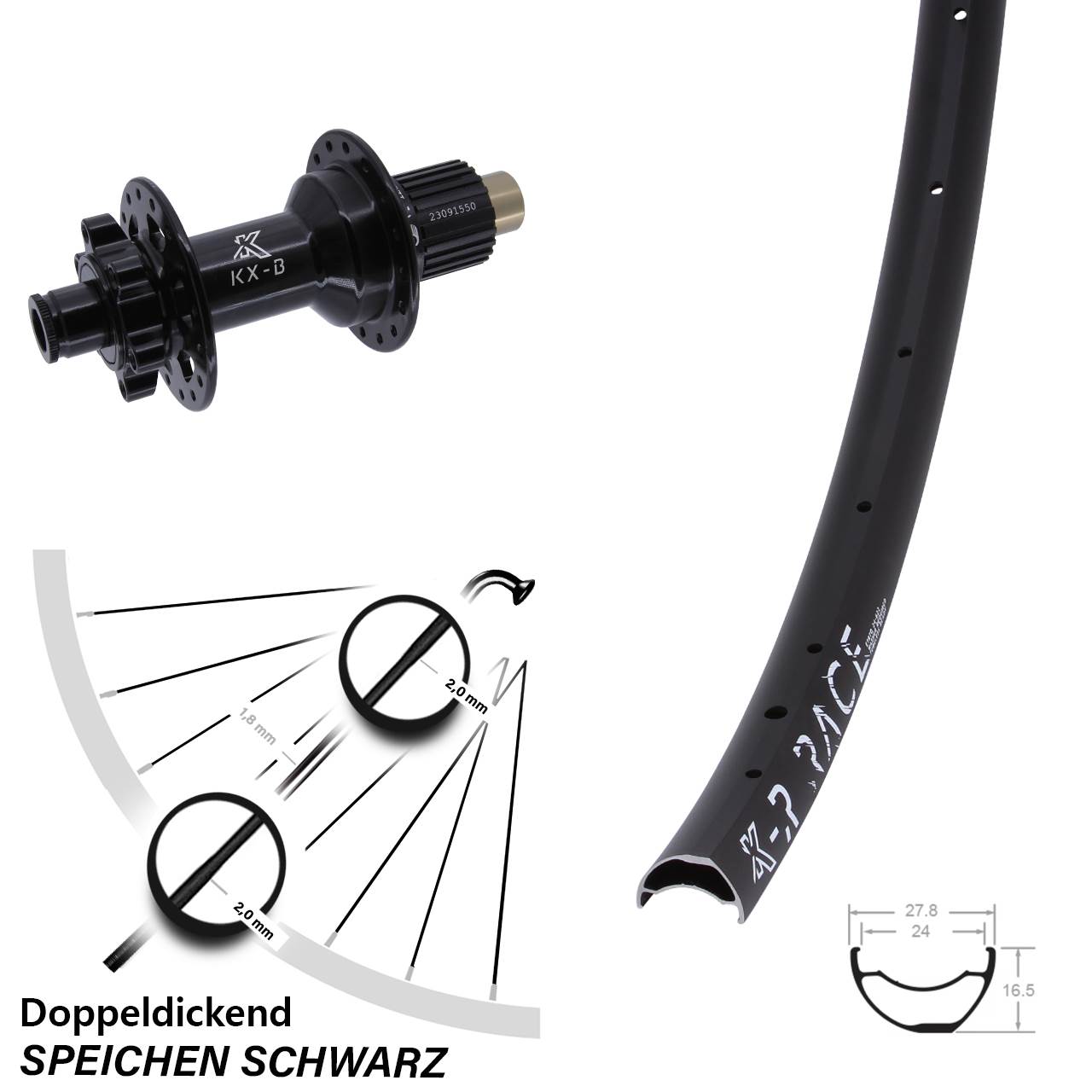 Technische Daten Hinterrad KX-R Race schwarz mit Nabe KX-B schwarz
