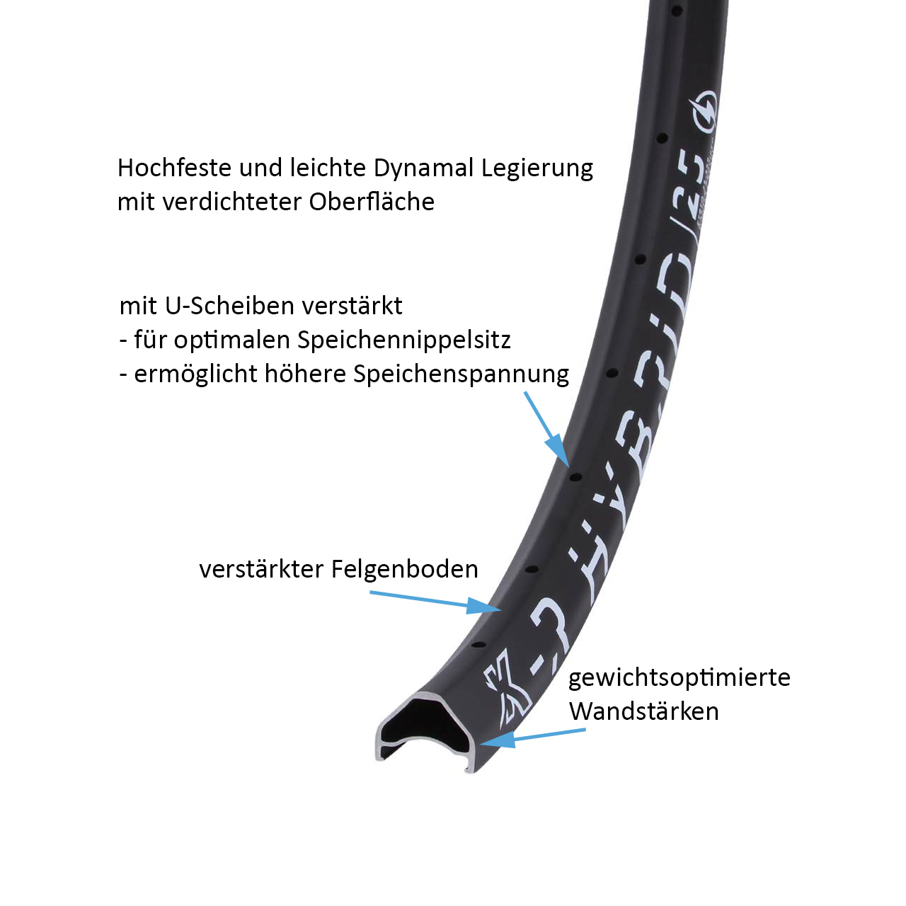- Speichenstärke: 2,3-1,7-2,0 mm Edelstahl