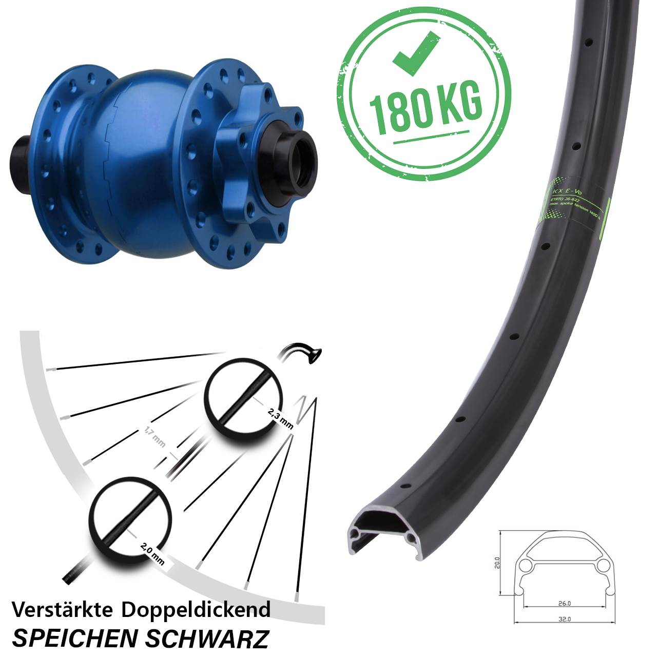 - Vorderrad 28 Zoll 29 Zoll KX Evo schwarz mit Nabendynamo SON 28 blau blau