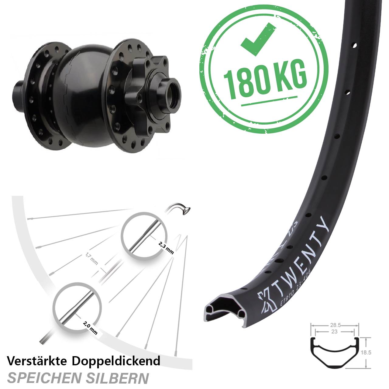 Technische Daten Vorderrad KX Twenty schwarz mit Nabendynamo SON 28-15-110 schwarz