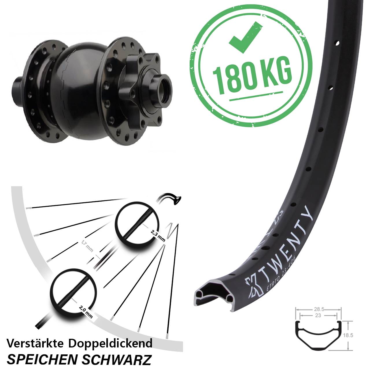 - Vorderrad 20 Zoll KX Twenty schwarz mit Nabendynamo SON 28 schwarz
