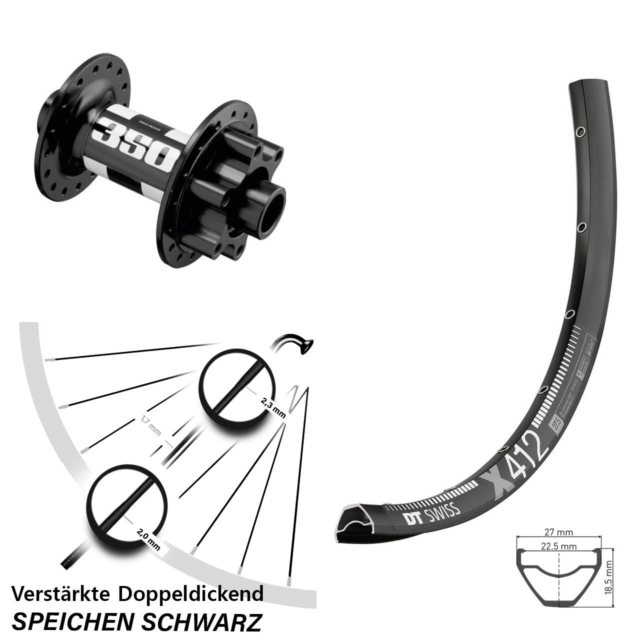 Technische Daten Vorderrad DT Swiss X 412 Disc schwarz mit Nabe DT Swiss 350 schwarz