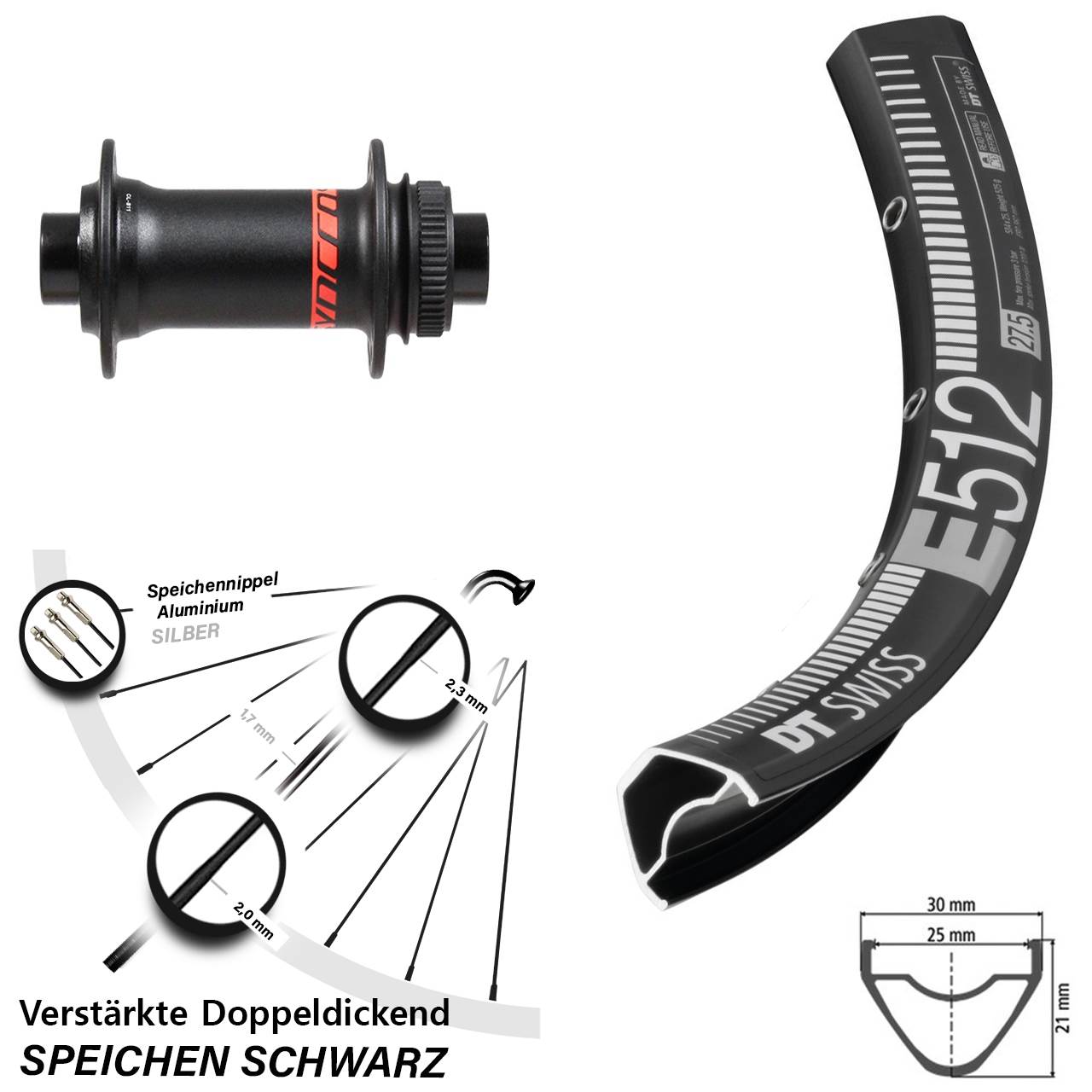 - Speichenstärke: 2,3-1,7-2,0 mm Edelstahl