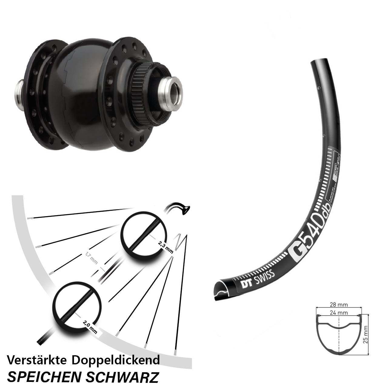 - Vorderrad 28 Zoll 29 Zoll DT Swiss G 540 schwarz mit Nabendynamo SON 28 schwarz