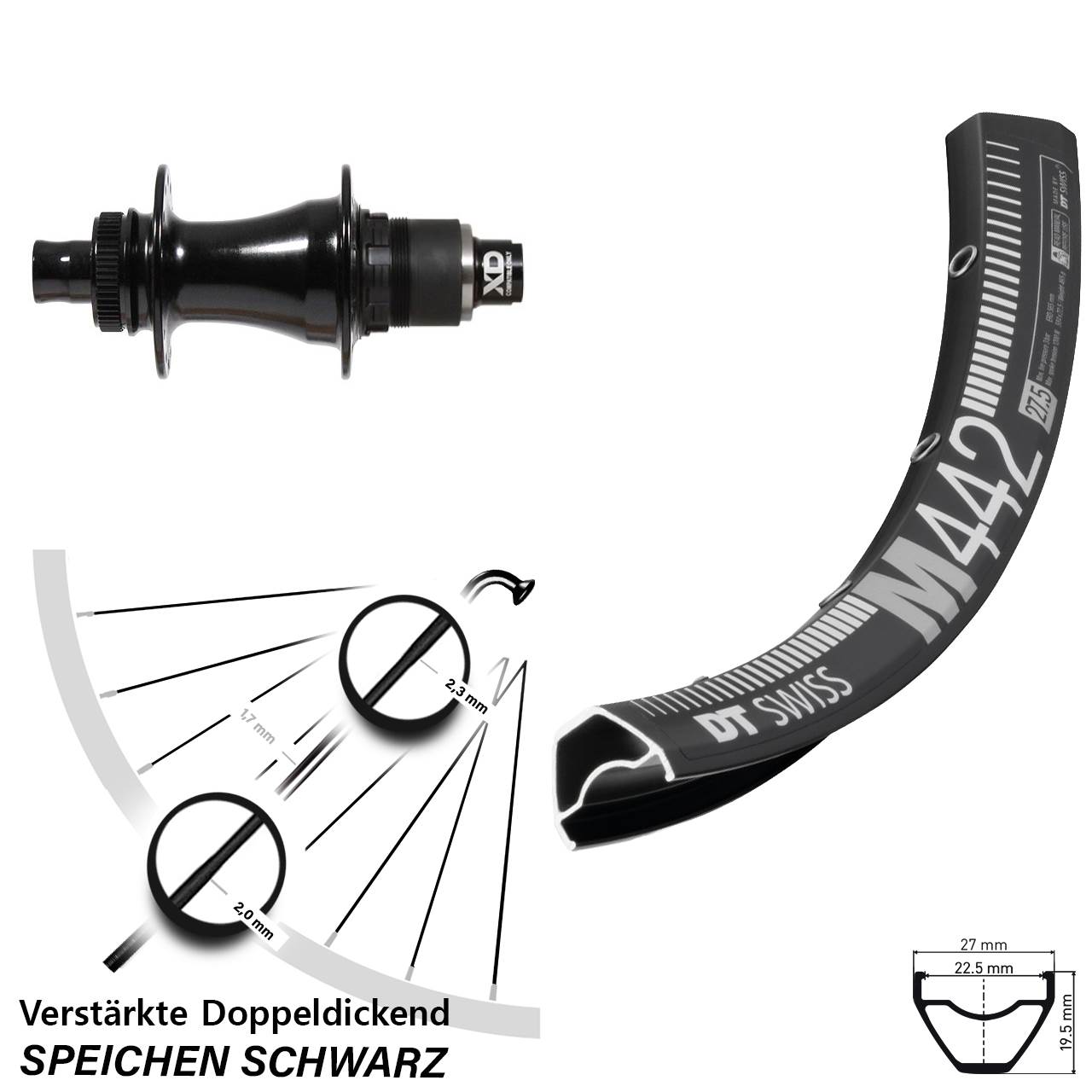 Centerlock Hinterrad 12x142 29 Zoll DT Swiss M 442 Formula CL-142S XD mit verstärkten Doppeldickendspeichen