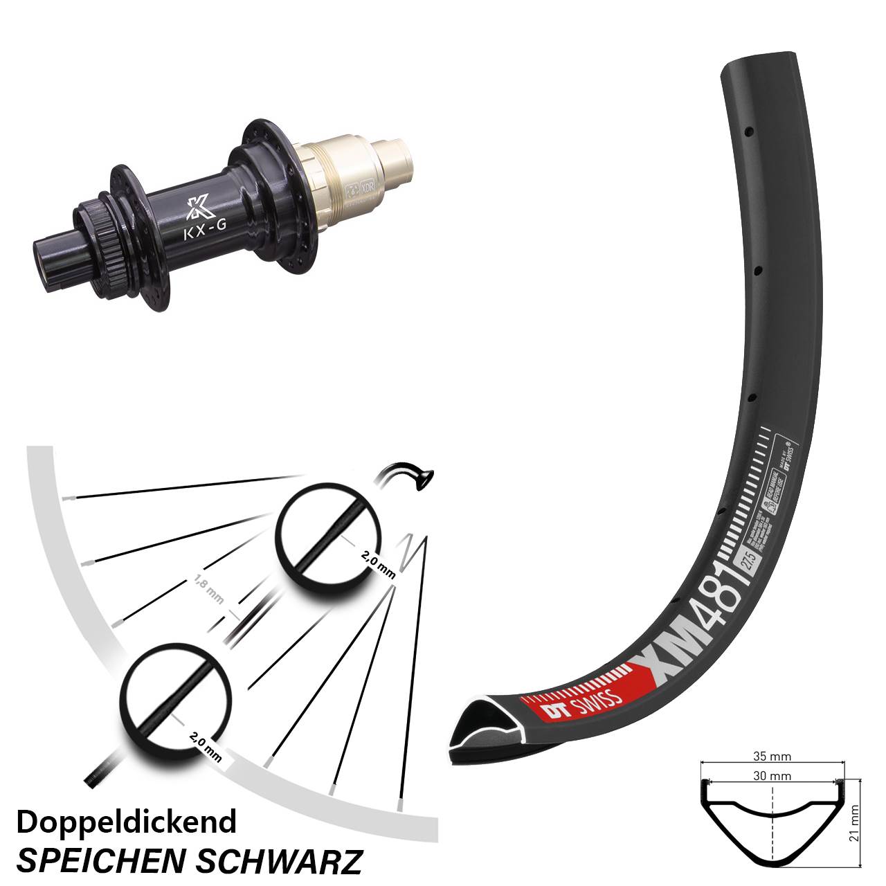 Technische Daten Hinterrad DT Swiss XM 481 Disc schwarz mit Nabe KX-G schwarz