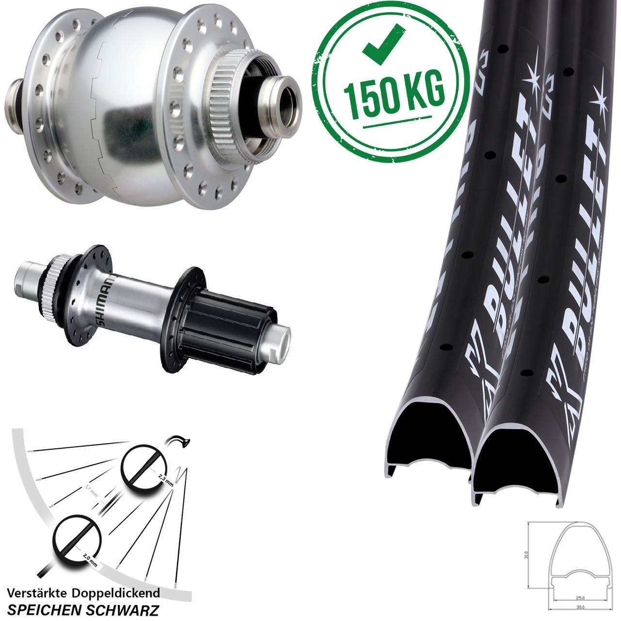 - Modell Vorderradnabe / Hinterradnabe: Shimano FH-RS770 SON delux silbern schwarz