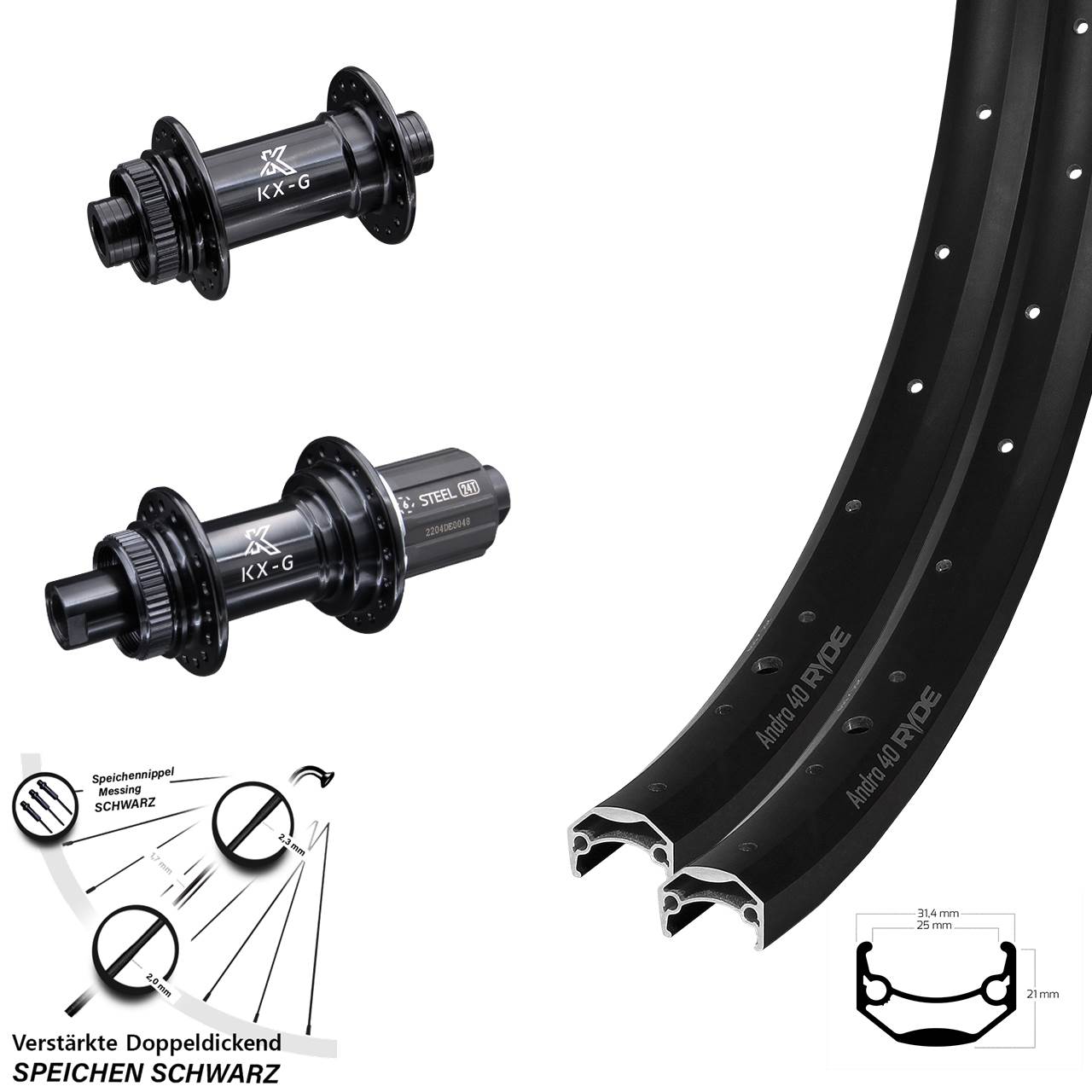 - Modell Vorderradnabe / Hinterradnabe: KX-G Steckachse KX-GS Stahlachse Stahl-Freilauf schwarz