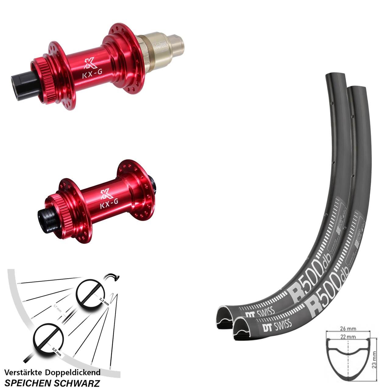 Centerlock Laufradsatz 28-29 Zoll DT Swiss R 500 KX-G rot XDR 15x100 12x142 mit verstärkten Doppeldickendspeichen