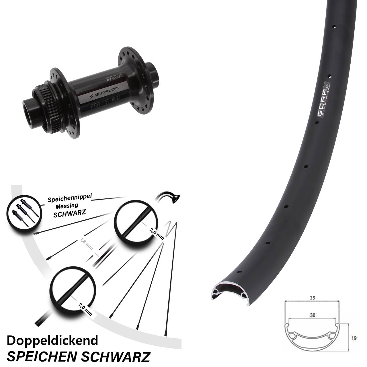 - Speichenstärke: 2,0-1,8-2,0 mm Edelstahl