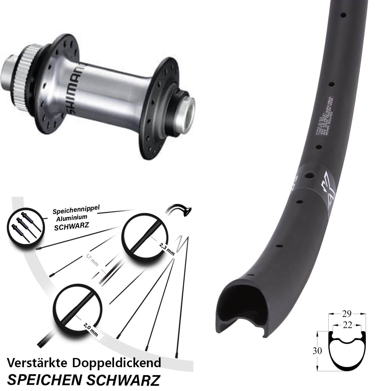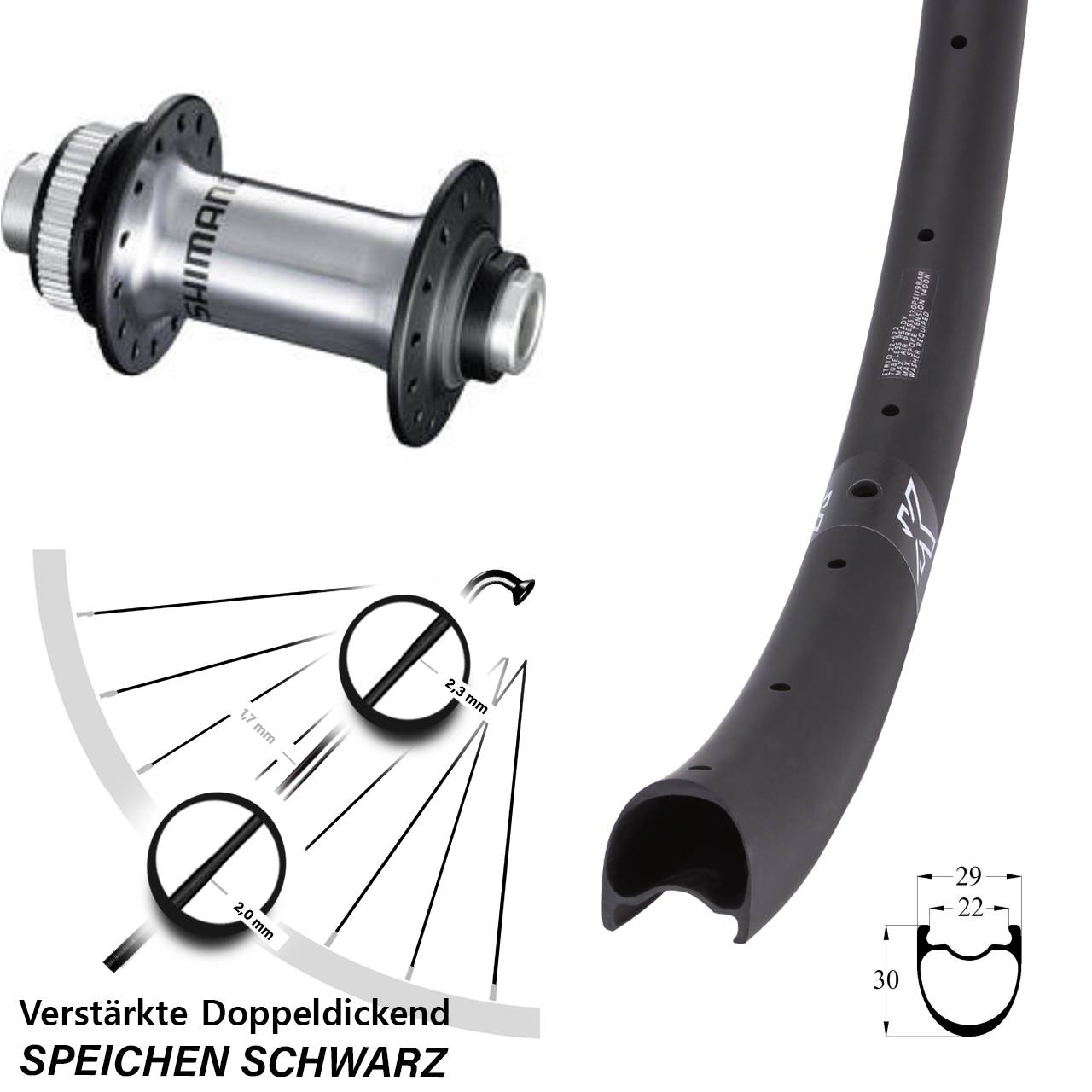 - Speichenstärke: 2,3-1,7-2,0 mm Edelstahl