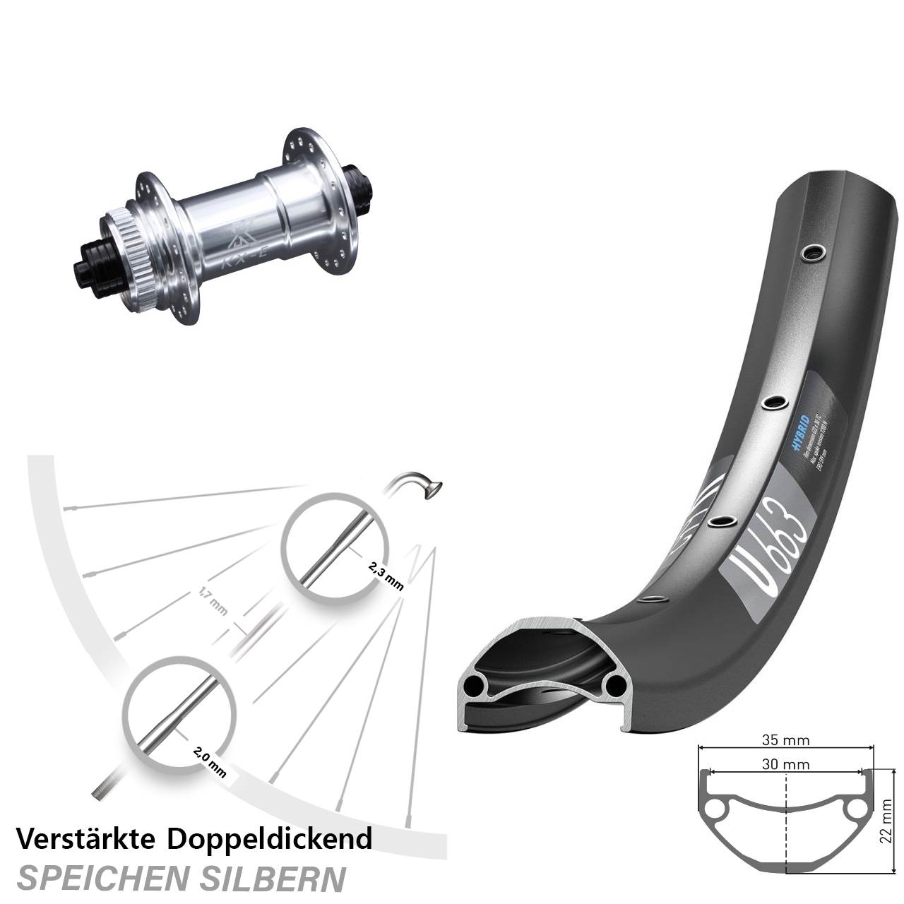 - Speichenstärke: 2,3-1,7-2,0 mm Edelstahl