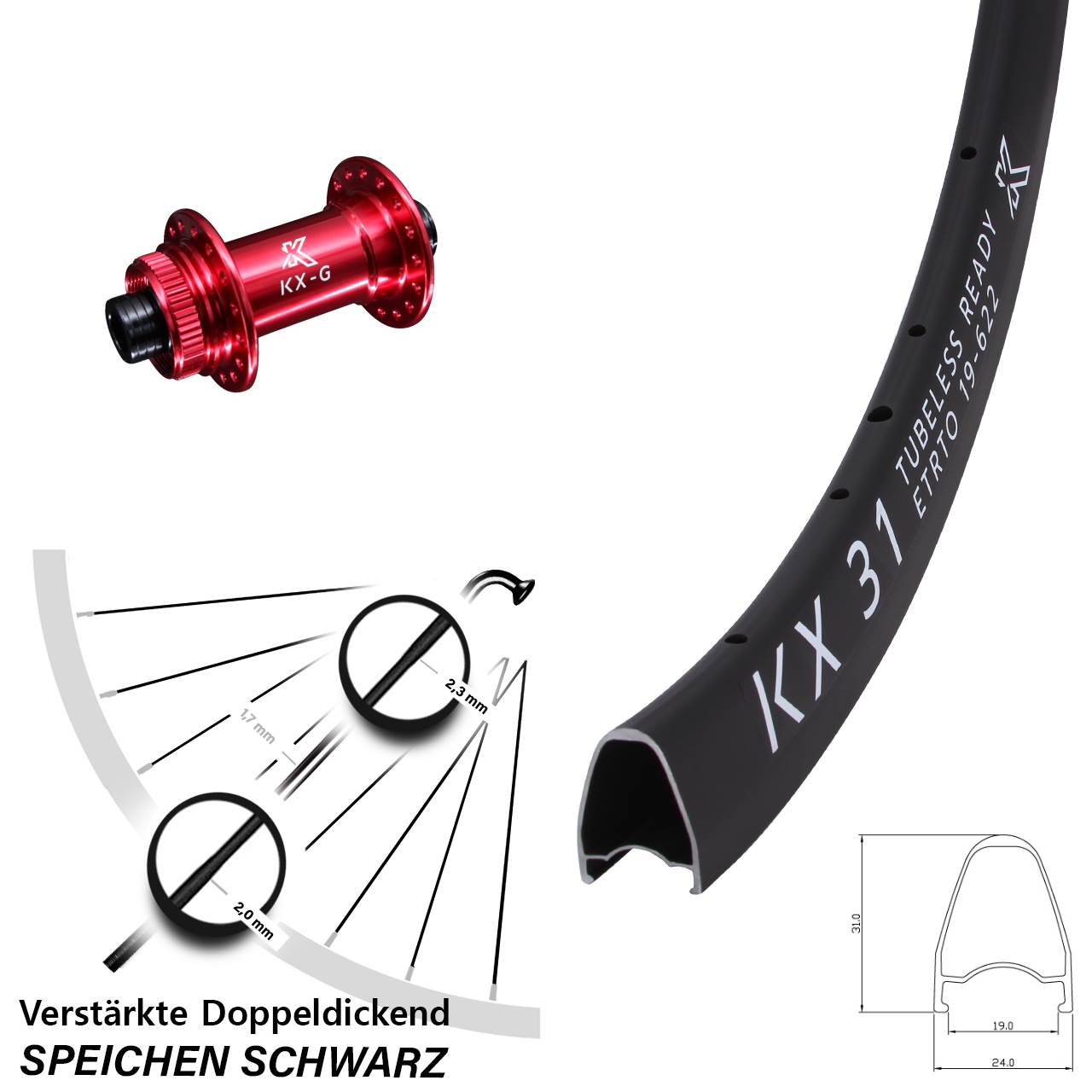 Technische Daten Vorderrad KX 31 schwarz mit Nabe KX-G rot