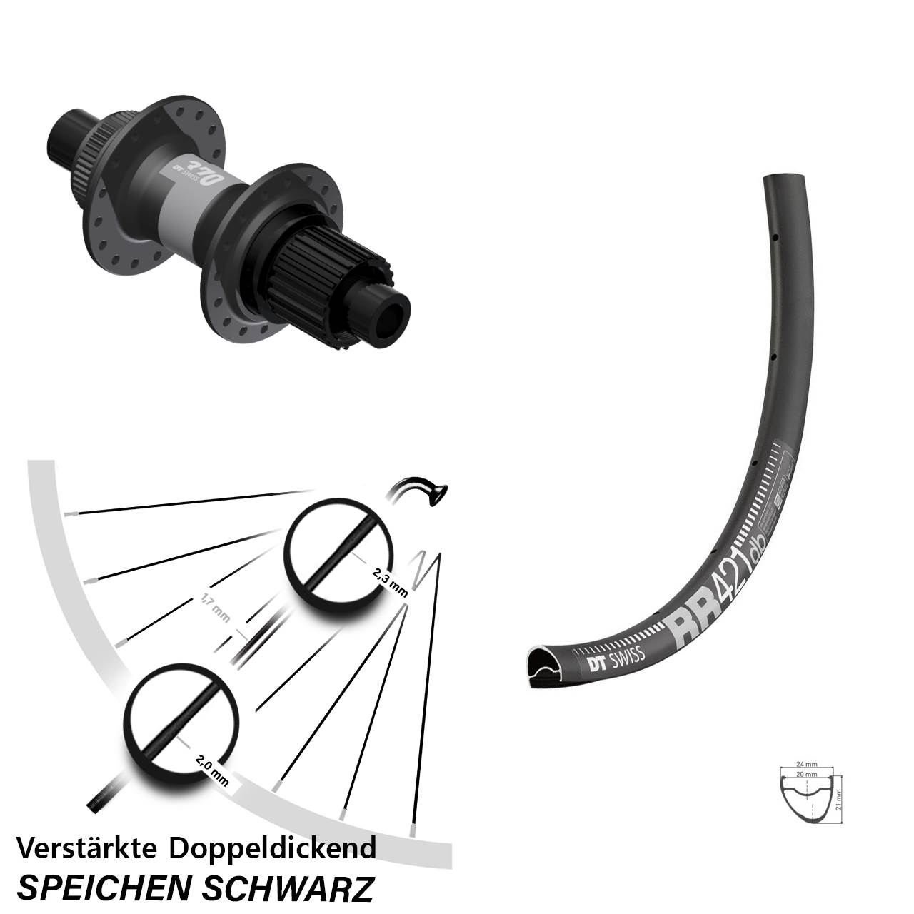 Technische Daten Hinterrad DT Swiss RR 421 Disc schwarz mit Nabe DT Swiss 370 Ratchet LN schwarz