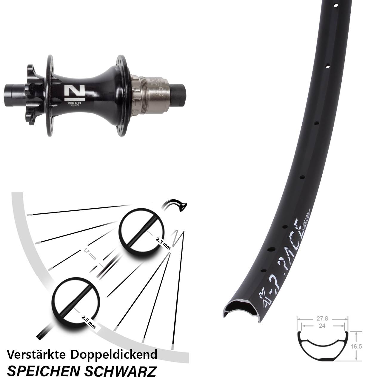 - Speichenstärke: 2,3-1,7-2,0 mm Edelstahl