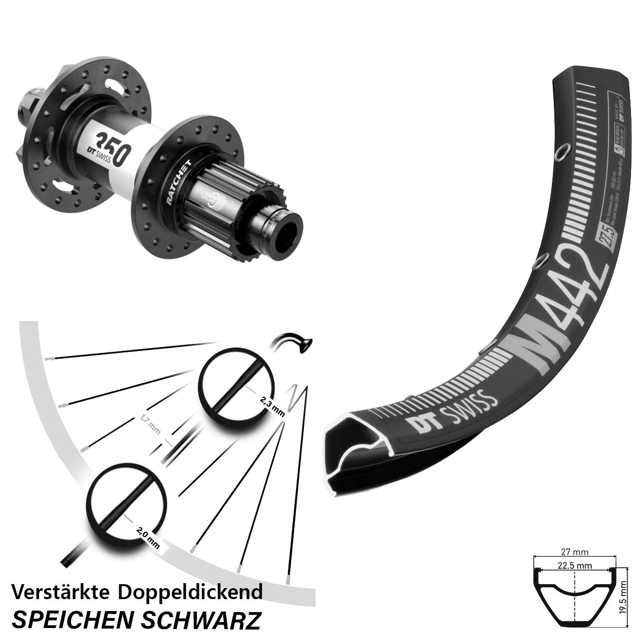Technische Daten Hinterrad DT Swiss M 442 Disc schwarz mit Nabe DT Swiss 350 Ratchet 36 schwarz