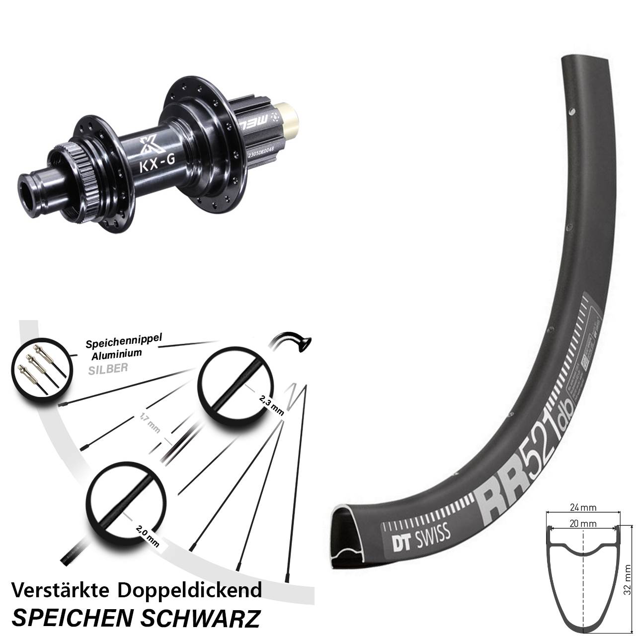 - Speichenstärke: 2,3-1,7-2,0 mm Edelstahl