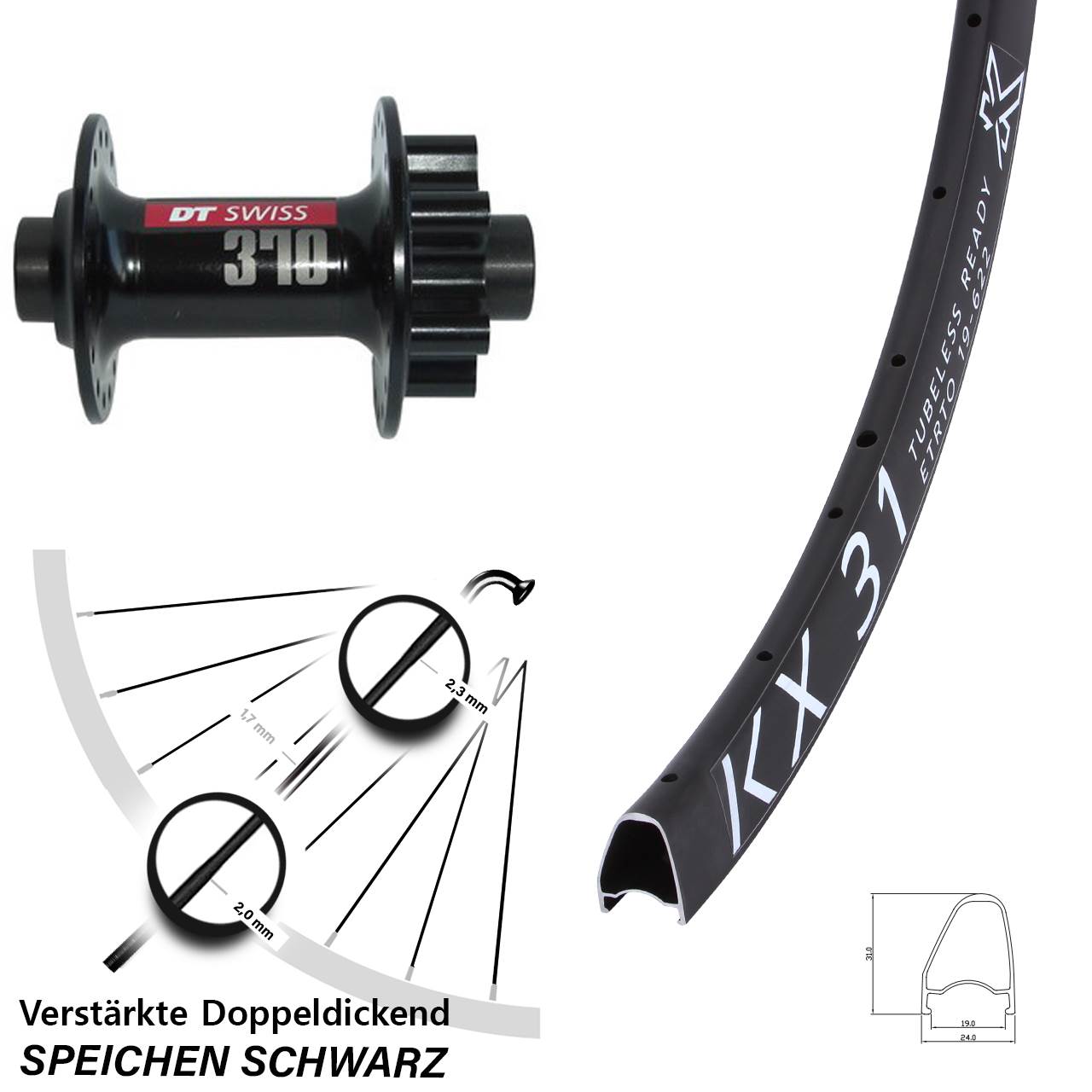 Technische Daten Vorderrad KX 31 Offset schwarz mit Nabe DT Swiss 370 schwarz