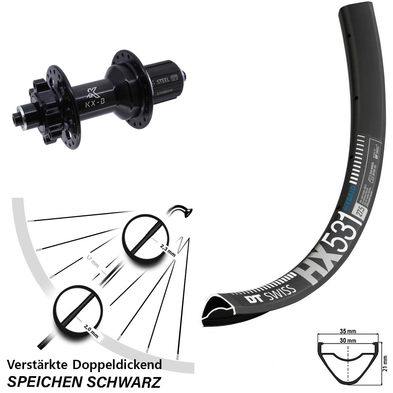 Technische Daten Hinterrad DT Swiss HX 531 Disc schwarz mit Nabe KX-BS verstärkt schwarz