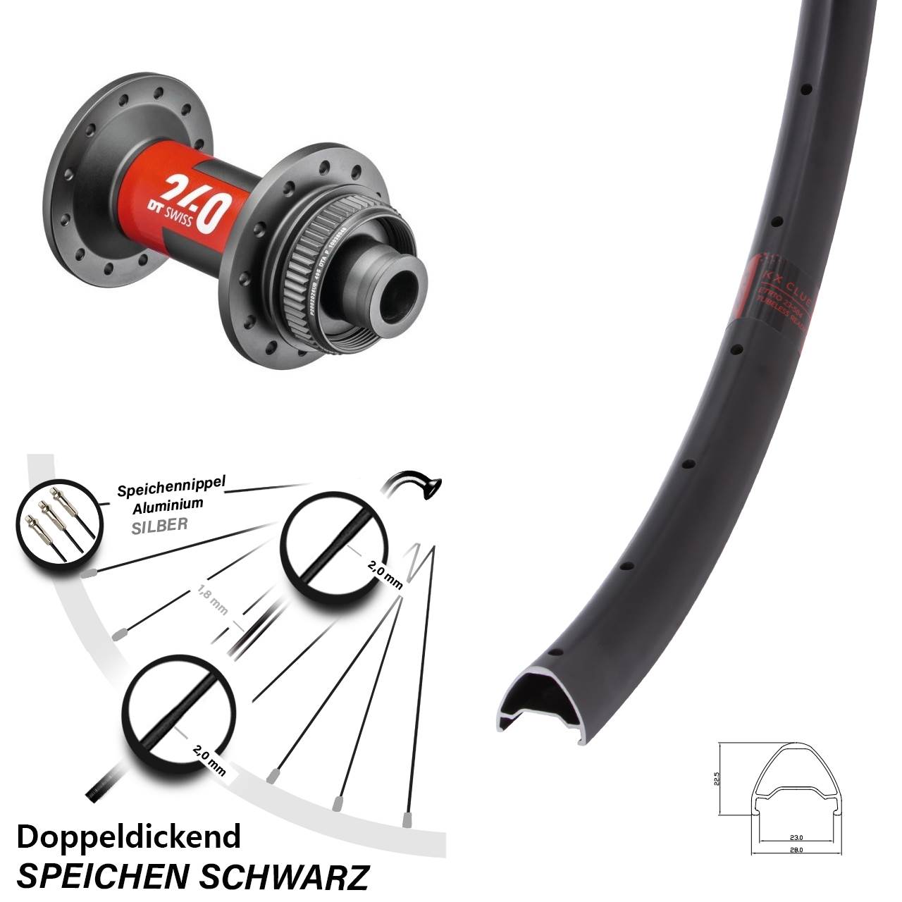 - Speichenstärke: 2,0-1,8-2,0 mm Edelstahl