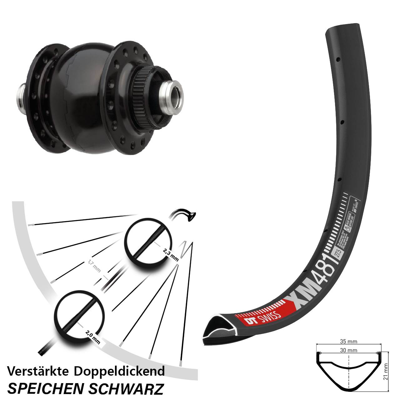Technische Daten Vorderrad DT Swiss XM 481 Disc schwarz mit Nabendynamo SON delux schwarz