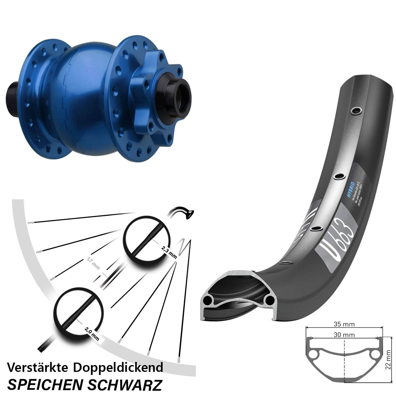 - Speichenstärke: 2,3-1,7-2,0 mm Edelstahl